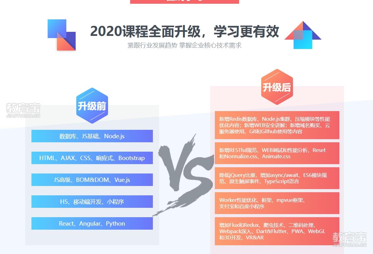 • TypeScript、模块、组件、服务、指令、管道、路由、Rx*js • WebView、Ionic简单&复杂组件、表单组件 • 语法基础、HTTP、MySQLdb、Django框架• JSX、组件、State、表单、虚拟DOM • ReactNative移动端组件• 冲刺项目、WebGL、PWA、Dart、Flutter